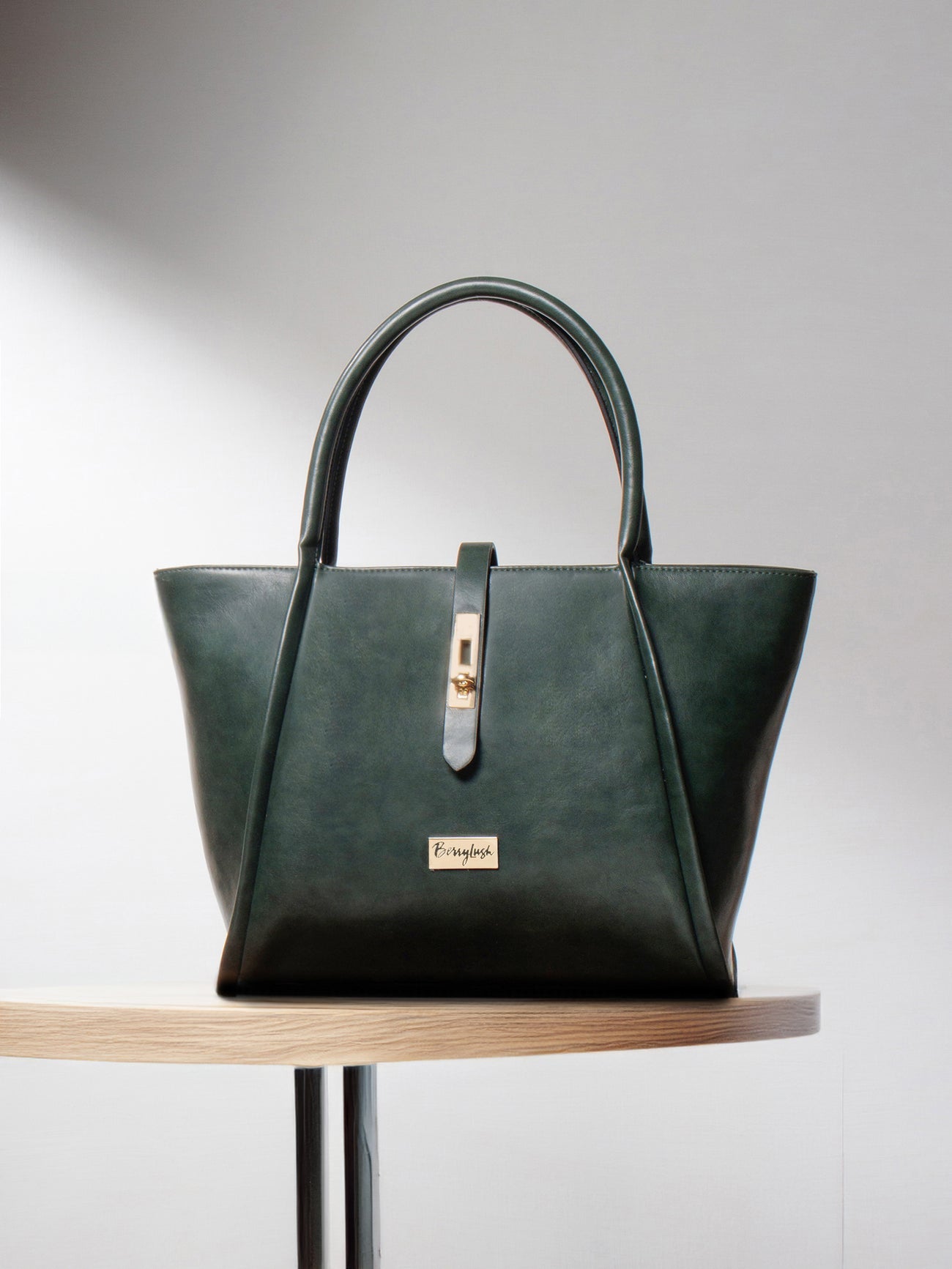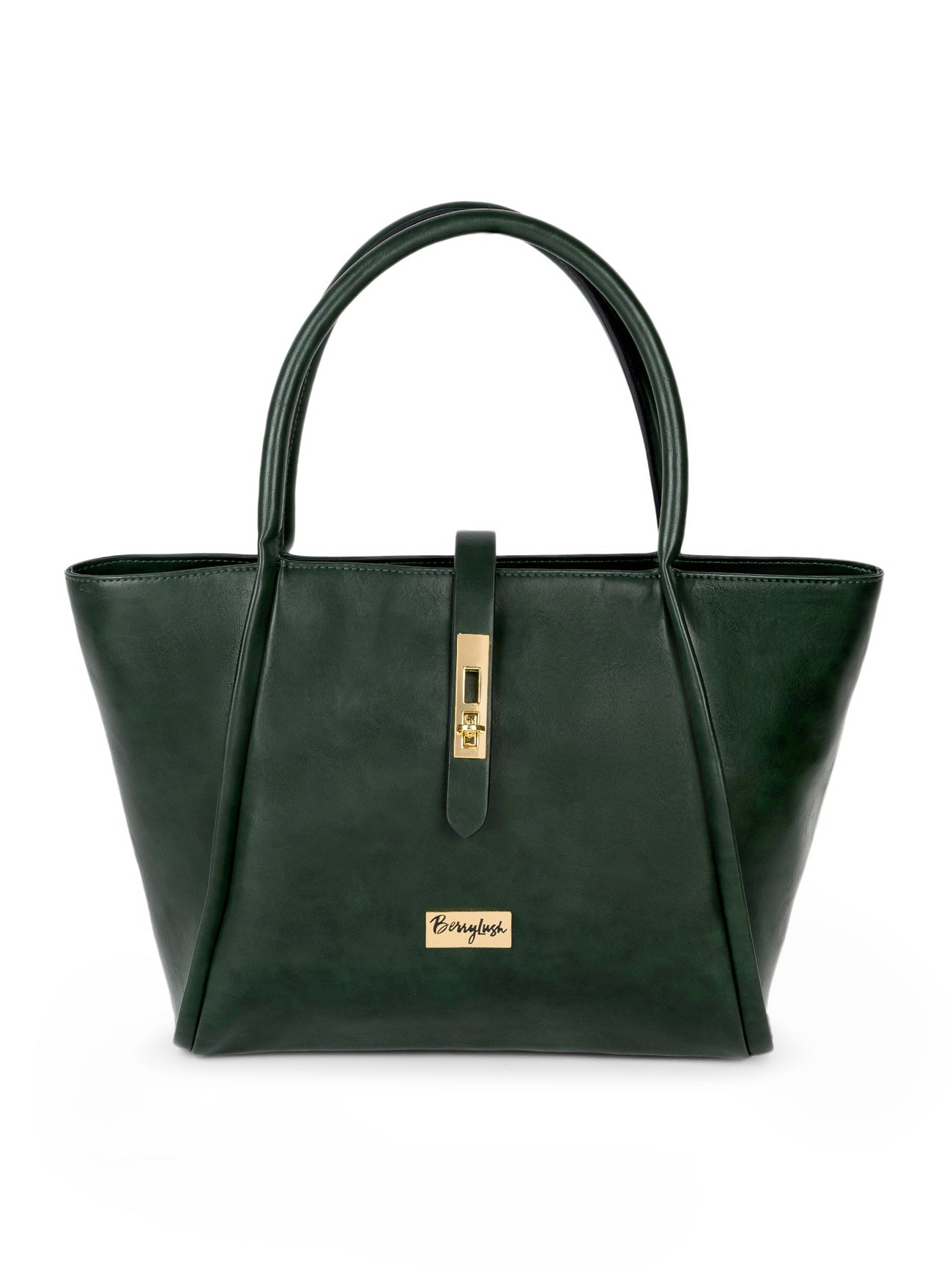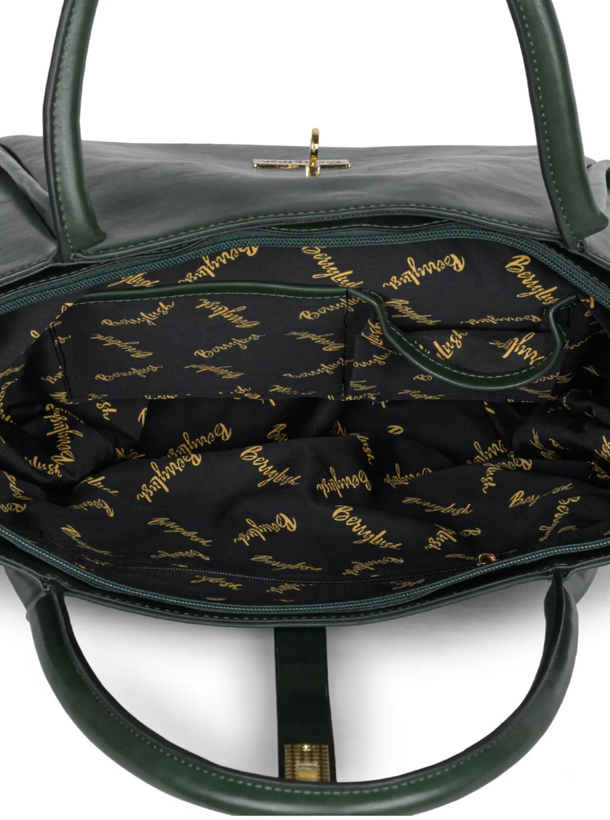 Berrylush Women Textured Green Synthetic Leather Two-Handles Push-Lock Shoulder Bag